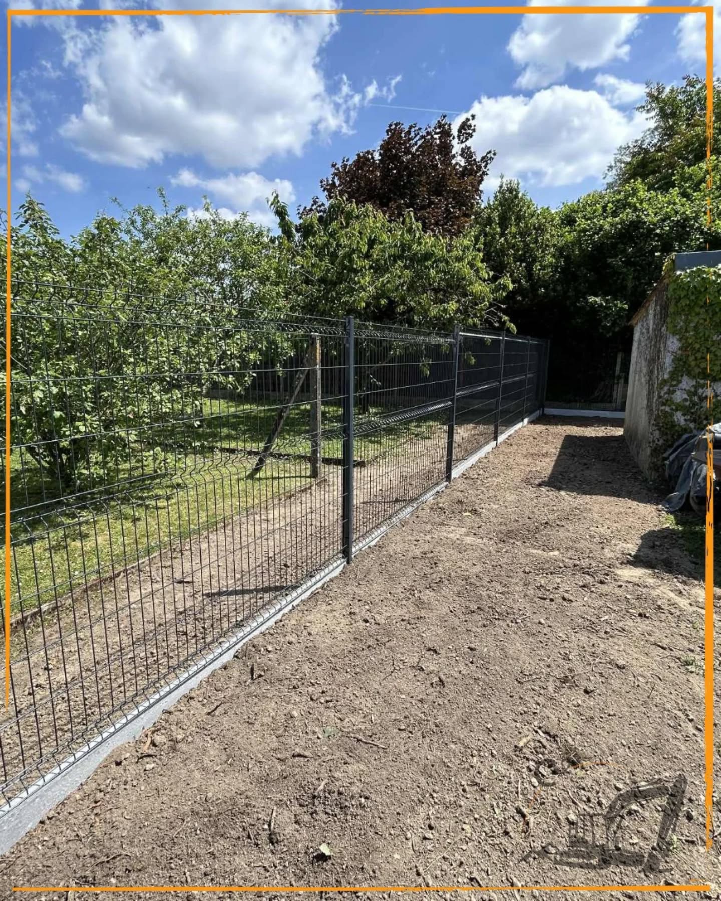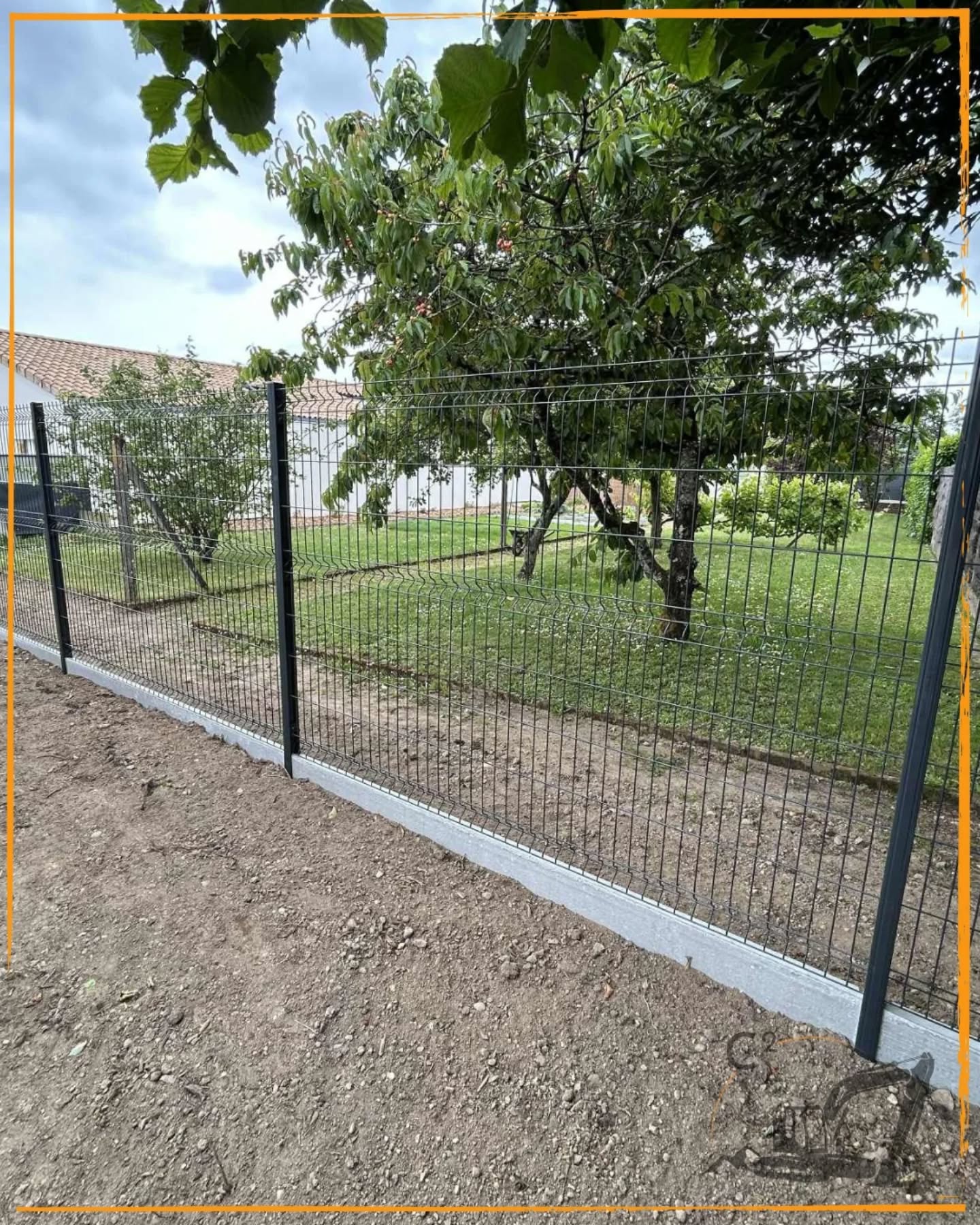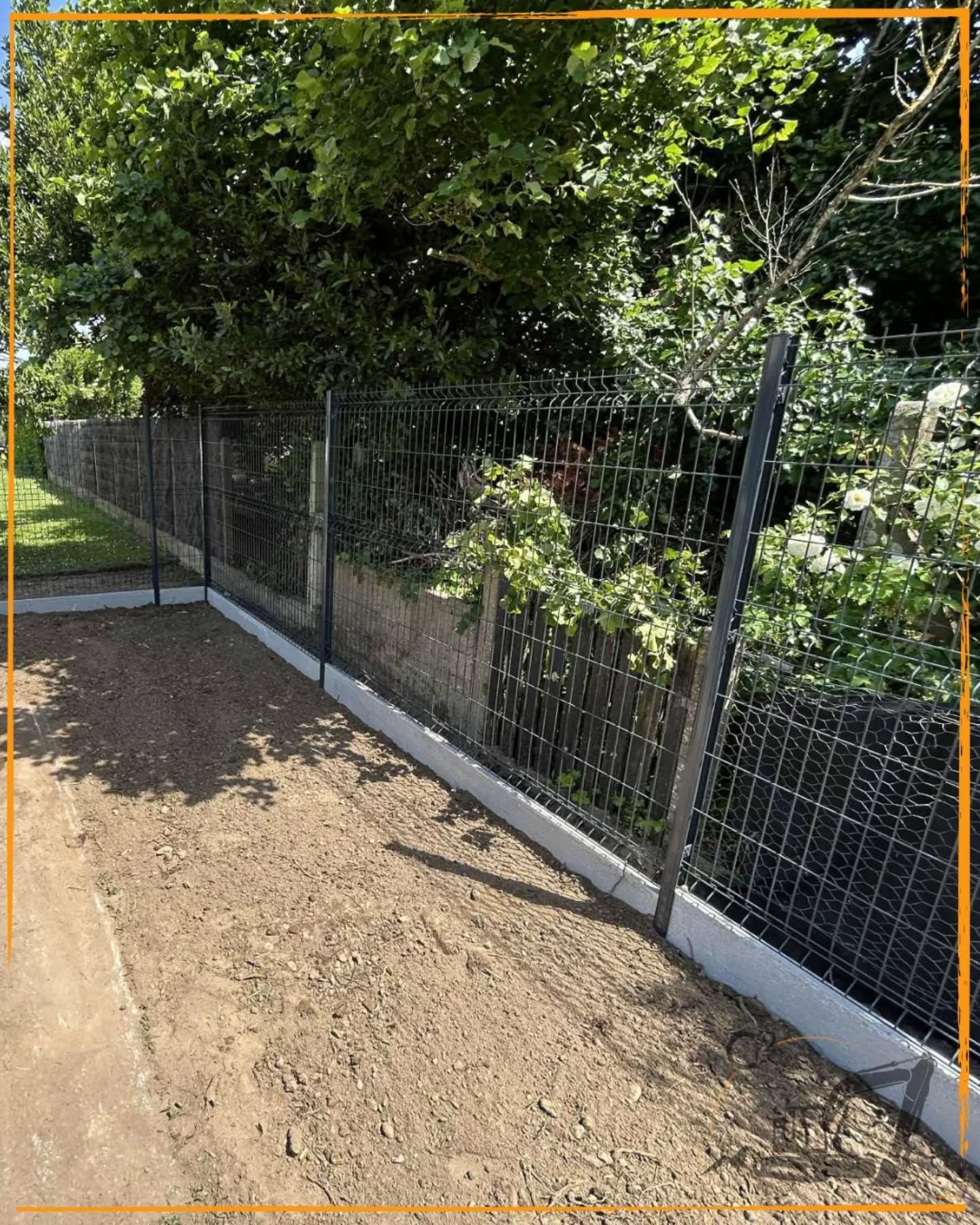 Pose de clôtures en grillage rigide avec soubassement et occultant noir en pvc